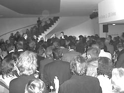 | ![]() Galerist Bernhard Wittenbrink zeigte sich wohlwollend aber überfordert, schon vom öffnen der zahlreichen Bewerbungsemails die ihn angeblich täglich erreichen. Kurator Florian Waldvogel bemühte sich, die Auseinandersetzung auf die wenig spannende Frage zu lenken ob denn Galeriesten oder Museen die "Bringer" unter den Künstlern zuerst entdecken. Selbst der Vertreter der Kritikerzunft Christoph Wiedemann konnte kaum mehr beitragen als die übliche, biedere Langeweile wie man sie vom Feuilleton der Süddeutschen Zeitung kennt. Das man den "dozemode", in den das Publikum gefallen war zu guter letzt auch noch als gespannte Konzentration interpretierte sorgte wenigstens für ein bisschen Erheiterung. Zum Glück wurde pünktlich um 10 Uhr der "Diskurs" abgewürgt und alle gingen zum wohlverdienten clubbing mit open end über. Obwohl man von solchen Veranstaltungen nicht allzuviel erwarten darf, hätten man sich doch wenigstens ein, zwei inspirierende Statements gewünscht, nicht nur wegen der 8 Euro Eintritt. © universal arts - Verwendung nur im Rahmen unseres Lizenzmodells Photos: universal arts |