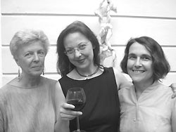 "Nicht nur für Frauen"Der Sommer hat Neuhausen fest im Griff, mehr als 30 Grad im Schatten, aber anstatt im Biergarten vor sich hin zu dösen, machen sich die Kunstfans auf den Weg in die Musentempel der Stadt. Die "Frauen Computer Schule", mit mehreren Filialen bereits eine etablierte Institution im Bereich der pivaten Fortbildung, nutzt ihre Räumlichkeiten von Zeit zu Zeit auch für Kunstausstellungen. Mitgründerin Elisabeth Seidel, die auch selbst zum Pinsel greift, gestaltete zusammen mit ihren Künstlerkolleginnen Jutta Haider und Hanna Sperl-Flüggen die Gemeinschaftsausstellung "Frauen, Geister und andere Wesen". Zu sehen waren, neben Gemälden und Zeichnungen auch Skulpturen und Materialbilder. Teils traditionell, teils humorvoll näherten sich die Drei dem Thema, Entwicklung der eigenen Potentiale durch kreative Betätigung und präsentierten einen Querschnitt durch ihr Schaffen. Getreu dem Untertitel der Ausstellung - nicht nur für Frauen - ergriffen auch einige männliche Besucher die Chance, in entspannter Atmosphäre, bei Wein und Käse einmal die weibliche Sicht der Dinge zu studieren. |