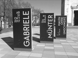 | ![]() Die Malerin machte bereits mit 14 Jahren ersten künstlerischen Schritte mit Portaitskizzen, es folgten ein Kurzstudium an einer Zeichenschule, ein Aufenthalt in Amerika und dokumentarische Arbeiten im Bereich der Fotografie. 1902 begann sie das Kunststudium in München an der von Wassily Kandinsky gegründeten Kunstschule "Phalanx", mit ihrem "Mentor" Kandinsky lebte und arbeitete sie zunächst auch hier. Bis 1908 begaben sie sich auch häufig auf Reisen, unter anderem nach Paris. Nach ihrer Rückkehr arbeitete das Paar ausser in München, wo sie die Künstlervereinigung "Blauer Reiter" gründeten auch bevorzugt in ihrem Murnauer Haus, welches Gabriele Münter 1909 erwarb.Hier entstand ein grosser Teil ihrer Werke. Kandinsky musste zu Beginn des Ersten Weltkriegs wieder nach Russland zurück, die Malerin lebte danach bis 1930 in Skandinavien, in Stockholm hatte sie auch ihr letztes Treffen mit Kandinsky. Mit ihrem zweiten, langjährigen Lebensgefährten Johannes Eicher zog sie dann wieder in ihr Murnauer Haus. Dort blieb sie mit ihm bis zu ihrem Tod 1962. Die Malerin war Zeit ihres Lebens sehr produktiv und auch geschäftstüchtig. Ihr Partner Johannes Eicher unterstützte ihre Karriere in jeder Hinsicht, auch dieser Aspekt wird in der Ausstellung ausführlich dokumentiert. Nicht zuletzt ihm ist es zu verdanken, dass Gabriele Münter ein angemessener Platz in der Kunstgeschichte zugestanden wurde. |