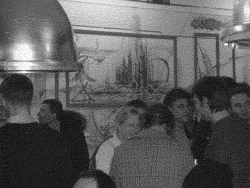 Die Probe eines weiteren Talentes gab Antonello di Mauro, der zusammen mit Raoul Müller den Kern der HipHop-Formation "Sparvatrag" bildet. Mit einer, leider etwas kurz geratenen LivePerformance leiteten die Beiden gekonnt den Übergang vom Kunstevent zur Party ein. Dafür, dass das Ganze nicht zu trocken geriet, sorgten verschiedene Sponsoren aus der Getränkeindustrie. Neben grossem "international Taste" und winzig kleinen japanischen Bieren wurde, für Vernissagen fast schon obligatorisch, auch Prosecco ausgeschenkt. Das wahre In-Getränk scheint aber nach wie vor ein, mit reichlich Vodka angeschärftes, künstlich aromatisiertes Süssgebräu zu sein, das angeblich Flügel verleiht. Ob sich der Anspruch der Veranstalter, Künstlern der Jugend- und Subkultur eine Chance zum Einstieg in Kunstmarkt beziehungsweise ShowBiz zu ermöglichen, erfüllen lässt, muss die Zukunft zeigen. © universal arts - Verwendung nur im Rahmen unseres Lizenzmodells Photos: universal arts |