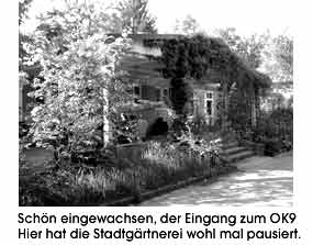 Sie zeigten am 19. und 20. Mai ihre Arbeiten im Rahmen der gemeinsamen Atelieröffnung "open". Das Repertoir umfasste figürliche und abstrakte Malerei, Skulptur sowie Schmuck und Möbeldesign. In manchen Räumen hat sich über die Jahre der Krankenhausgeruch erhalten können, jedoch die vorwiegend freundliche Kunst und die waldähnliche Idylle der Aussenanlage lenken davon ab. An die Vermarktung der Kunst denkt man hier nur entfernt. Man spührt, die Künstler nutzen die Ruhe und Abgeschiedenheit vorwiegend zur Entspannung und Kreativität. Es gibt sogar Platz für Performancekünstler, die bei gutem Wetter im Freien auftreten. © universal arts - Verwendung nur im Rahmen unseres Lizenzmodells Photos: universal arts | "Kunstidylle in Oberföhring"München den 20. 5. 2001 Bereits seit 13 Jahren gibt es im Bürgerpark Oberföhring die, vom Kulturreferat geförderte Künstlerkolonie, bestehend aus zwei Kunstvereinen, OK9 und Collage. Siebenundzwanzig Kunstschaffende aller Sparten haben hier in ehemaligen Krankenhausbaracken ihre Ateliers. ![]() |