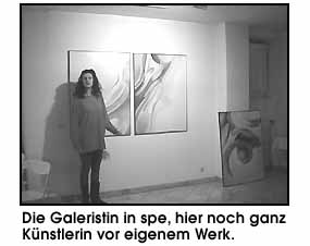 | ![]() Das Konzept sieht neben der Ausstellung von Bildender Kunst auch Performance, Musik, Lesungen und Theaterevents vor. Die aktive Mitarbeit der Künstler ist hier gefragt und wird, neben der notwendigen Akzeptanz durch das Publikum, entscheidend für den künftigen Erfolg der Galerie sein. Wir werden das Projekt weiter im Auge behalten und natürlich auch in den NEWS über laufende Ausstellungen informieren. Anm. d. Red.: Die ZEITfürKUNST Galerie ist mitlerweile umgezogen, neue Adresse ist die Wörthstr. 39 (siehe auch news) mehr zu Renée Rauchalles siehe auch... © universal arts - Verwendung nur im Rahmen unseres Lizenzmodells Photos: universal arts |