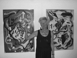 "Vergesst Babylon"München den 31. 8. 2001 Bei dem Begriff Babylon denkt fast jeder sofort an die bekannte "Sprachverwirrung". Die Ausstellung "Vergesst Babylon" wirkt dieser zumindest künstlerisch entgegen, hier spricht die Kunst alle Sprachen, denn die Ausstellungsorganisatorin und Malerin Johanna Maria Pfeiffer hat sich mit dem Projekt "Menzing und Kunst" das Ziel gesetzt die Komunikation zwischen verschiedenen Kunstformen zu fördern. Dies ist bereits die fünfte Ausstellung in Folge, die aktuelle wird in einem schön im Grünen gelegenen leerstehenden Haus in der Weidmannstrasse präsentiert. Es gehört nämlich auch zum Konzept, dass momentan ungenutzte Gebäude vorübergehend als Ausstellungsforum genutzt werden, hier im "Kleinen Haus der Kunst" ist es schon zum dritten Mal gelungen Künstler aller Sparten friedlich nebeneinander der Öffentlichkeit zu präsentieren.