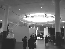 "..nur nicht malen"Ein neuer Stern am Münchner Messehimmel wurde in diesem Januar geboren. Die media artfair mit dem leicht provokativen Titel "UNPAINTED". Wie der Name schon vermuten lässt sucht man hier vergeblich nach traditionellen Gemälden. Schauplatz ist der historische Postpalast (das ehemalige Paketzustellamt 1924-1927). Dieser postfuturistische Bau mit Glasturmoberlicht ist ein passender Rahmen für diese zukunftsorientierte Schau der modernen Künste. Algorithmen und Videoinstallationen auf Flachbildschirmen aller Grössen, Hologramme, Digital erstellte Riesenwandteppiche mit Polit-Popmotiven, verschiedene Übergrössen an Fotoabzügen auf Alu Dibond gebürstet oder wahlweise hinter Acrylglas bestimmen das Bild der im Kreis angeordneten Messestände. In der Mitte des Gebäudes unter dem Glasturm ist eine schöne grosszüginge Performance Bühne installiert, allerdings um sich von diesen Vorführungen ein Bild zu machen, genügt ein kurzer Abstecher auf die Messe nicht. Man müsste sich schon 4 Tage Zeit nehmen um alles zu sehen, solange dauert die Veranstaltung nämlich. Aber an visuellen Reizen mangelt es ja nicht, es blinkt und bewegt sich an den meisten Ständen und auch in den vielen, aussen herum angeordneten kleinen Kojen. Manchmal könnte man denken hier machen die Maschinen die Kunst, wie z.B. ein Roboterarm der aus Styroporblöcken klassisch anmutende Skulpturen fräst. ![]() | ![]() Kurz entsteht der Eindruck, dass man versehentlich auf einer Technologiemesse gelandet ist, aber man gerät auch an Aussteller mit Hang zur Nostalgie die ihre Flachmonitore mit dicken Holzbilderrahmen schmücken. Ja und dann gibt es diesen Seitentrakt des Gebäudes in Richtung Cafeteria. Hier findet man sie doch noch an den Wänden, etwas im Abseits, die sammelbare "Flachware", auf Papier ausgedruckte Computergrafiken und wenn man genau hinschaut stehen auch auf den grösseren Messeständen in den Ecken kleinere Versionen der Fotoabzüge. In jedem Fall ist diese Messe für die Münchener Kunstwelt ein Gewinn, wenn auch die Ideen nicht die allerneuesten sind, vieles ist schon in den 80 ern und 90ern ausprobiert worden, war damals aber nur sehr kompliziert zu realisieren. Heute profitiert man als Künstler vom schnellen Fortschritt der Technologie und man kann sagen hier ist einiges davon erfüllt was man als "technischen state of the art" bezeichnen könnte. Zuletzt sei noch erwähnt, dass man auf einer Riesen Leinwand am Eingang die aktuellen "tweets" mitlesen kann, wo manch einer verkündet, Kunst wäre jetzt nur noch im Cybyerspace angesagt. Fazit ist, solche Auguren kennt man auch schon seit den 90er Jahren und man fragt sich, warum stehen dann die Messestände immernoch in der "realen Halle" und nicht im Internet herum. Wäre vielleicht auch schade, denn hier findet man eine "Life-Ansammlung" von Internationalen Galerien und Künstlern im überschaubaren Rahmen, darunter natürlich auch namhafte Münchner Vertreter der Künste. © universal arts - Verwendung nur im Rahmen unseres Lizenzmodells Photos: universal arts |