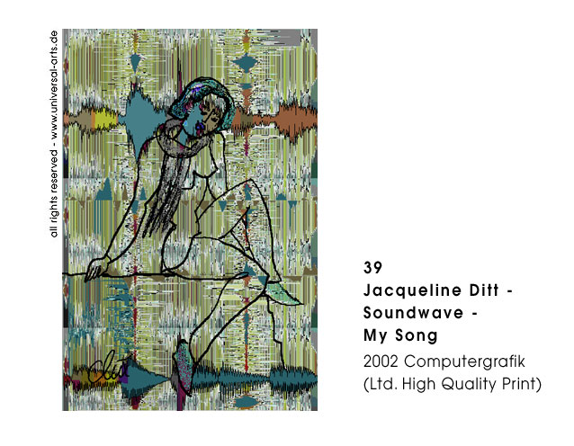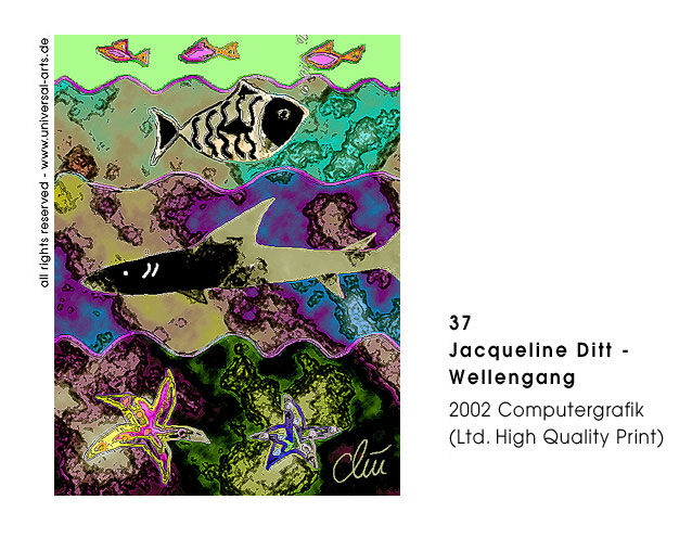 Die Ausstellung "Waves" von Jacqueline Ditt beschäftigt sich thematisch mit dem verschiedenen Auftreten des Wortes Welle oder Wave. Ob direkte Bedeutung oder im übertragenen Sinn, die Malerin und Grafikerin Jacqueline Ditt setzt die verschiedensten dieser Wortschöpfungen in Bilder bzw. Szenen um. Mittels Collage, Strichzeichnung, Typografie und Computertechnik entwickelt sie ihre typische Bildsprache. Um das Ergebnis von der virtuellen Ebene auf die Reale zu transponieren werden diese Computergrafiken als High Quality Prints in limitierter Auflage gedruckt.