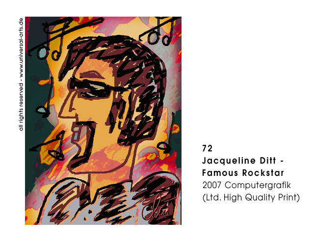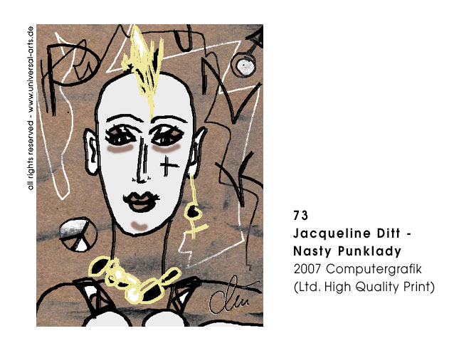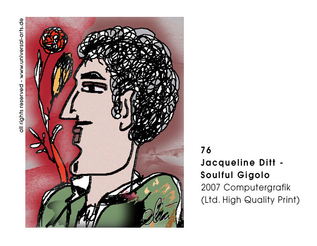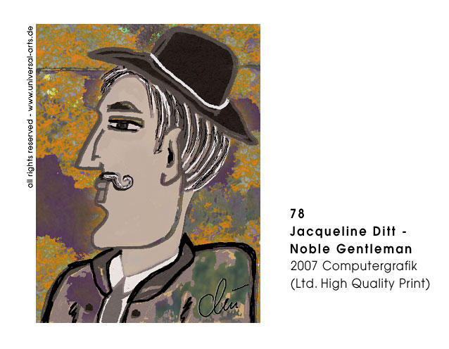 8 Originalgrafiken (ltd. Edition) zum Thema "Styles & Attitudes". Jacqueline Ditt zeigt an Hand von einem weiblichen und einem männlichen Modell, wie sehr modische Accessoires und Hairstyles den Typ eines Menschen verändern können. Die Punklady kann sich in eine Romantic Lady oder der Rockstar in einen Nobel Gentleman verwandeln. Es scheint fast so , als könne man wählen ob man sein Leben als "Superstar" oder eher unspektakulär gestalten könne. Trotz aller Verkleidungskunst ist es jedoch nicht so einfach zu überzeugen. Dazu muss dann doch der persönliche Charakter mit der äusseren Erscheinung korrespondieren.