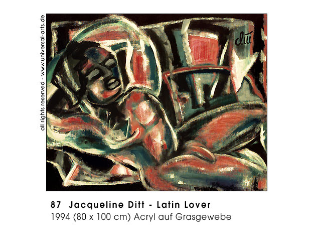 heavy contrasts while also transparent painted parts are appearing. - "Exhibition '94" - 12 paintings by Jacqueline Ditt.