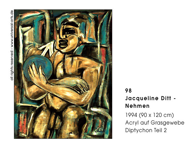 the clichés of our society which are strong desired by some people. - Exhibition 1995 - "Begehrlichkeiten" - 12 paintings by Jacqueline Ditt.