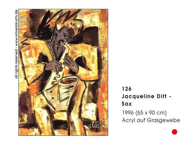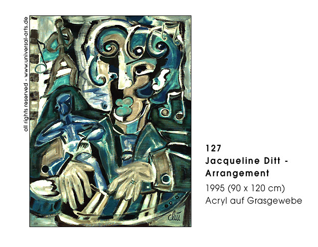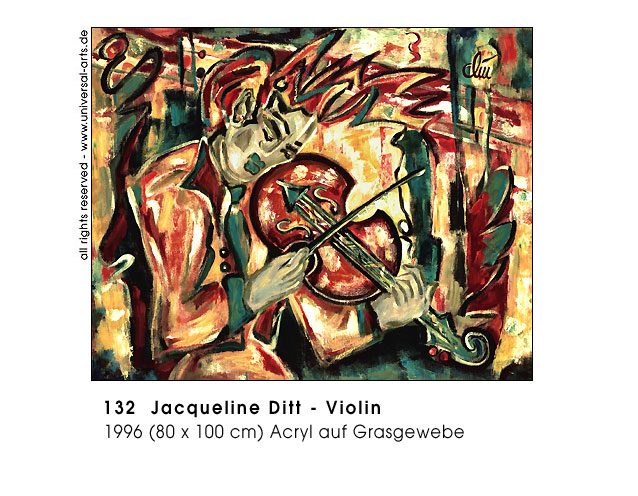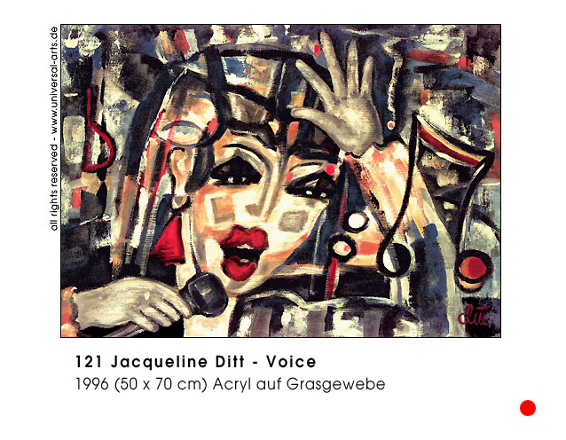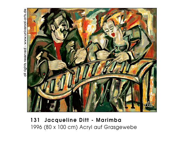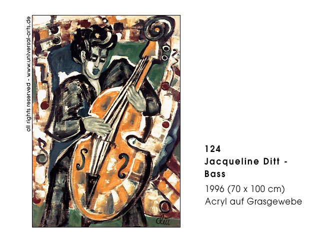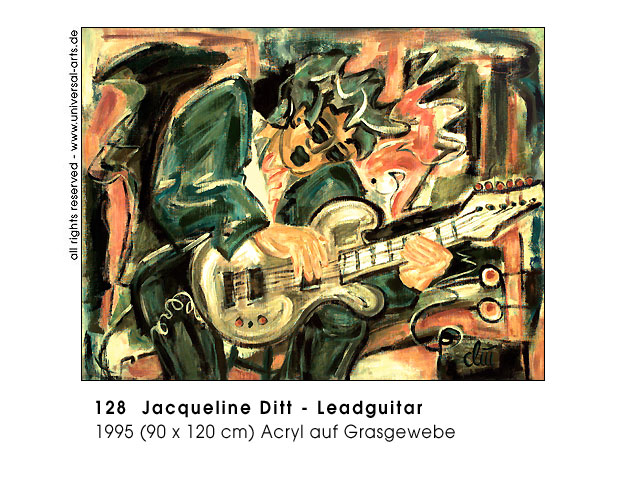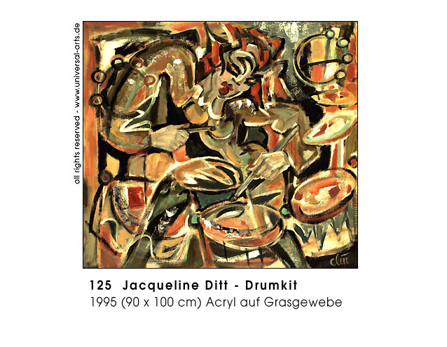 composer Mario Strack. Here she tries to "play" all instruments through her pictures. - Exhibition 1996 - "Get the Groove" - 12 paintings by Jacqueline Ditt.