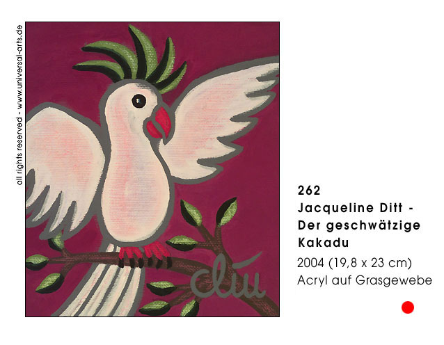 The exhibition "Animal Show" typifies human characters or qualities through different animals. The artist asks: "Is there an relationship between an animal and the human being or is this just delusion ?" - Exhibition 2005 - "Animal Show" - 23 paintings by Jacqueline Ditt.