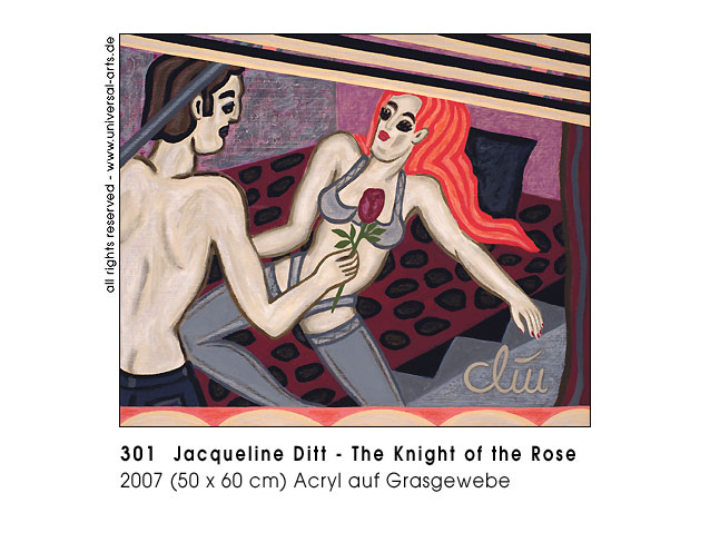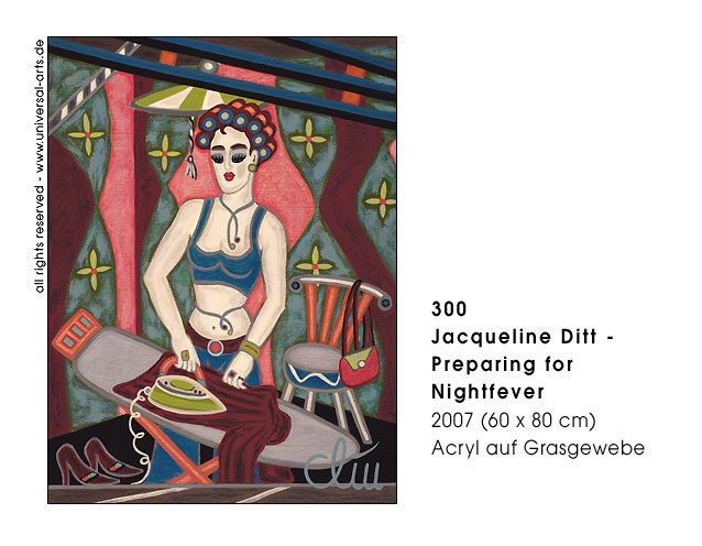 So with all anonymity of the singles and pairs a certain "confidenceness" or dissociated relationship with the others may develop, although one does not really know each other usually. - Exhibition 2007 - "Behind Venetian Blinds" - 12 paintings by Jacqueline Ditt.