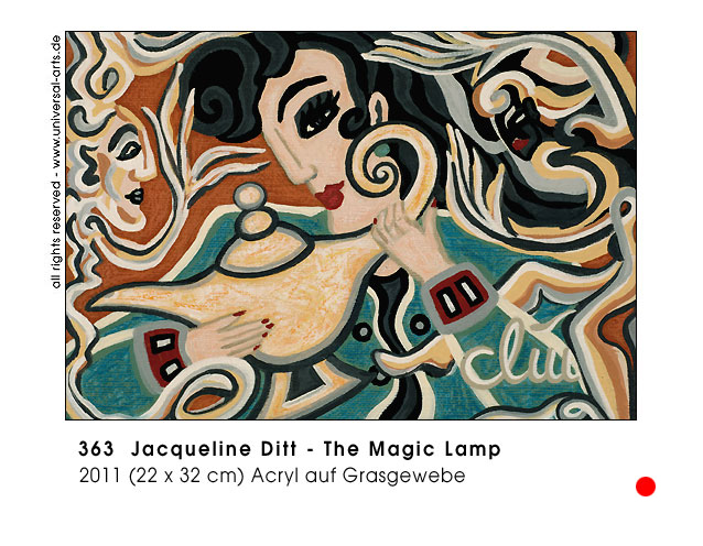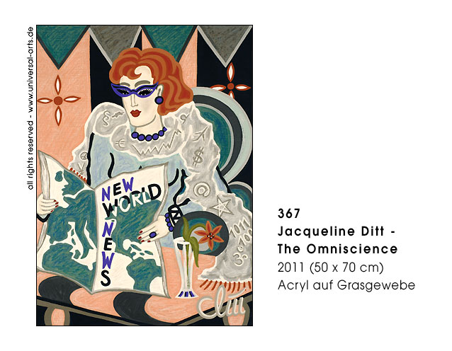 The dream to submerge and leave all things behind, to find everlasting love or the door to paradise. The wish to gain omniscience, immortality or even of acting devinely. Well what shall we say to this ? - "God protect us from what we want", dreaming is still permitted. - Exhibition 2011 - "Whishes & Dreams" 12 paintings by Jacqueline Ditt.