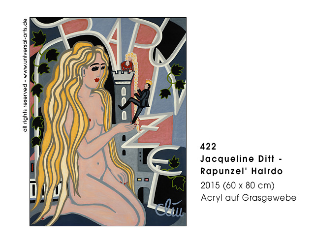 rich, often kings if they are elder, or heroes and brave knights. All this "Fairy stuff" is undoubtedly entertaining and sometimes even instructive, so the artist doesn't want to change them in substance but they are what they are very popular "old stories" and in relation to tradition in stereotypes we should rather turn to emancipation. - Exhibition 2015 "Fairy Tales - Reloaded" - 7 paintings and 2 graphics by Jacqueline Ditt