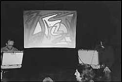 Abb. links: Die Künstler Richard Aicher und Andreas Merz im Foyer bei der Stärkung vor dem Auftritt. Abb. rechts: Die Selbigen in Aktion im Studio. Im Vordergrund Mario Strack. Mehr Informationen zu Weltklang finden sie unter www.weltklang-music.de Photos: universal arts Pressestimme zur Lesung: universal arts ...Live Event und CD-Präsentation der Gruppe Weltklang, elektronische Musik von Andreas Merz und Richard Aicher. In München ![]() "zurück zum Photoalbum..." |