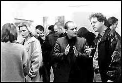 Vernissage "Wider den Stachel" - München 19. 10. 1996universal arts präsentiert die Ausstellung "Wider den Stachel" von Katrin Moser sowie den, in Zusammenarbeit zwischen der Künstlerin und Mario Strack entstandenen Trickfilm "Himmelsleiter/Gefunden".