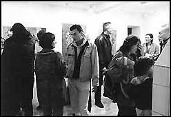 Abb. links: Frank D. erklärt, "nicht die Grösse des Bildes ist entscheidend sondern..." Abb. rechts: Ganz hinten die Journalistin Sabine B. im Gespräch mit Martin A. Photos: Gogo Eisert Pressestimmen zur Ausstellung: Wider den Stachel Die in der Münchner Kunstszene sehr engagierte Künstlerin Katrin Moser zeigt gerne die verschiedenen Seiten ihres kreativen Potentials. Egal, ob sie das Publikum mit Rauminstallationen konfrontiert oder mit Malerei, stets tragen ihre Arbeiten eine avantgardistische, abstrakte Handschrift... Kunst Aktuell "Wider den Stachel"-Katrin Moser zeigt neue Arbeiten bei universal arts ...Die Bilder entstehen durch übereinanderlegen und verschmelzen verschiedener Wachsschichten in Verbindung mit Farbe, Pappe und Papier. Material, Arbeitsprozess und Inhalt gehen hier eine Synthese ein... Münchner Wochenblatt ![]() "zurück zum Photoalbum..." |