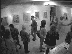 Benutzen Sie das Link um eine original Klangkulisse der Vernissage abzuspielen. Spring 09 - Vernissage Review-BlogMünchen 30. 5. 2009Nach einem hochsommerlichen Mai zeigten uns die letzten Tage des Monats ihre "kalte Schulter". Trotz dieses heftigen Temperatursturzes, liessen sich die Besucher zur Ausstellungseröffnung "Spring 09" nicht lange bitten, ab 20 Uhr war der "Laden voll". Die von Künstlerhand persönlich gefertigten Canapés, wie auch die aktuelle Kunst wurden von den Fans des Künstlerpaares ausgesprochen goutiert und der Prosecco fand reichlichen Absatz. Die gute Stimmung des Publikums passte dann fast zum Thema der Computergrafik Ausstellung "Good News ?". Hier stylt die Künstlerin Jacqueline Ditt ihren Kunstrezipienten eine "Schöne heile Welt" auf das Bütten ähnliche, interessant gehämmerte Papier. In den Bildern sind sogar authentische News aus Printmedien abstrakt verarbeitet. Den wenigsten Kunstfreunden fiel auf, dass das Ausstellungstitelbild eine nachdenkliche Person mit grossem Fragezeichen über dem Kopf darstellt. Dieses Zeichen hinterlässt schon ein Gefühl einer leichten Verunsicherung, so bleibt nicht ausgeschlossen, dass manch eine gute Nachricht sogar die Ursache für eine schlechte sein könnte. Ob sich diese kleine kritische Andeutung dem harmoniebedürftigen Publikum erschloss ist nicht bekannt, darüber schweigt man ohnehin lieber. Der Medienkünstler Mario Strack präsentierte ebenfalls ein sehr interessantes Programm im Studio. Der Vorfilm "Stand the Snow" zeigt Makroaufnahmen mit schnitttechnisch dramaturgisch aufbereiteten Einzelbildern, die sich am Ende zu einem ästhetischen Stilleben mit einem stehen gebliebenen Ästchen in einer eisigen Winterlandschaft zusammenfügen. Dazu kreierte er einen surroundsound wie in einer "Eis"-Stalaktitenhöhle. Sein Musikvideoclip "Hardware" beschäftigt sich hingegen in Wort und Bild eher abstakt mit den Thema, wie der Mensch immer wieder an seinem Schicksal bzw. an der Welt "drehen" will. Dies stellt er auf imposante Weise in seinem Stop Motion Film mit Hilfe von Schrauben und Nägeln dar, die sich in Rhythmus zur Musik bewegen. Besonders beeindruckend war eine Grossaufnahme von verrosteten Nägeln, die die Kinoleinwand fast formatfüllend einnimmt. Photos: universal arts Web-blogs zur Ausstellung: "Good News ? " & "Hardware" Jacqueline Ditt und Mario Strack - universal arts Täglich laufen unzählige Nachrichten aus aller Welt über die Newsticker. Bei dieser Informationsflut stellt sich oft die Frage was sind hier eigentlich die "Good News ?" Dieses Thema behandelt Jacqueline Ditt in ihrer aktuellen Computergrafik Ausstellung. Mit digitalem Zeichenstift und "echten" News aus Zeitungsberichten collagiert die Künstlerin am Computer. Sie benutzt die einströmenden Nachrichten und kreiert für uns damit die gefilterte "schöne heile Welt". Hierbei arbeitet sie mit Zeitungsrastern, Pixelstrukturen und verschiedenen überlagerten Bildschärfebereichen, diese unterstreichen die flüchtige Erscheinung der Informationen in Printmedien und auf dem Bildschirm. Wofür braucht man Schrauben, Muttern, Beilagscheiben, Bolzen oder Stifte? Um etwas zu befestigen, ganz klar. Ist man nicht nur Handwerker sondern auch Komponist wie Mario Strack, dann schreibt man ein Lied zum Thema. So geschehen in "Hardware", dem aktuellen Stück des Künstlers. Um die Musik zu illustrieren hat er seine gesamte Eisenwarensammlung vor der Kamera ausgebreitet und in Szene gesetzt. Erstaunlich wie schön vor allem auch rostige Nägel bei genauerer Betrachtung sein können. Kulturknoten.de ![]() "zurück zum Photoalbum..." |