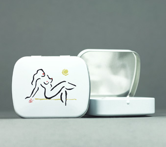 "Tin Box Hot Girl" 2018 Artmultiple von Jacqueline Ditt (Wkvnr: vx1478tbhg) Scharnierdose aus Weissblech Vierfarbig - weiss / schwarz -rot -gelb Breite 6 cm - Länge 4,8 cm - Höhe 1,7 cm limitierte Auflage 200 Stück 3.- EURO So können Sie online bestellen Orderformular